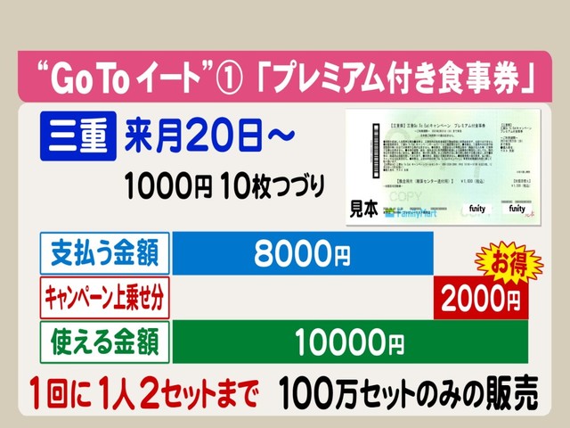 「どうお得になるか」というと、三重県の場合は1000円分が10枚つづりになっている1万円分のチケットを8000円で買います。1万円分を8000円で買うので、2000円お得です。
