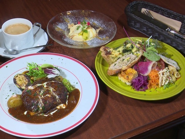 メインのハンバーグはデミグラスソースたっぷりの絶品。