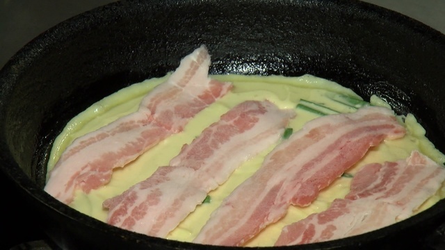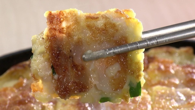 チヂミに豚肉とチーズを加え、お好み焼き風に仕上げた人気のメニューです。