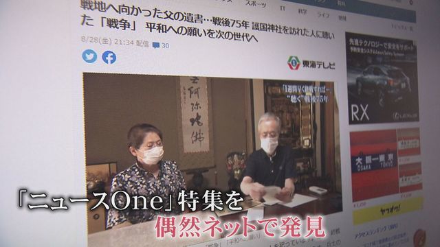ニュースOneで放送した戦後75年の特集。愛知縣護国神社を訪れる参拝客にインタビューした際、偶然出会ったのが林さんです。