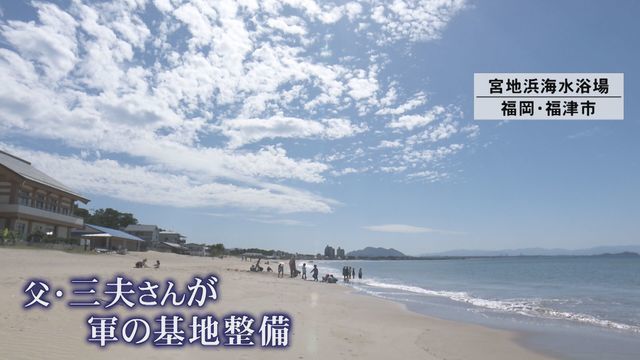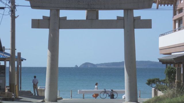 鳥居の先に広がる、真っ青な海。この海岸で、父・三夫さんは本土決戦に備えるための、基地整備をおこなっていました。