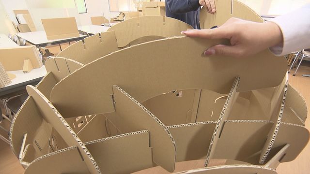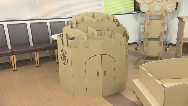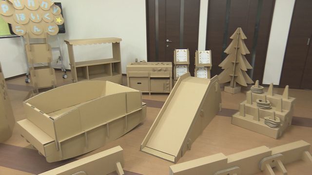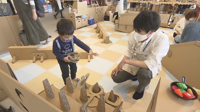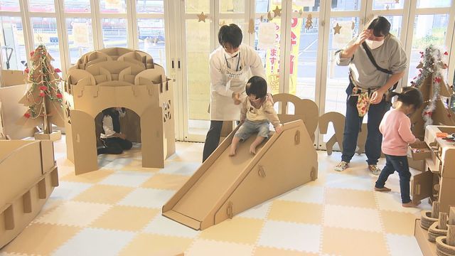 子どもたちが楽しそうに遊んでいるのは、コロナ禍で注目されている遊具。その理由は家の中でも邪魔にならず安心して子供を遊ばせることができるからですが、それを可能にしたのが段ボールです。