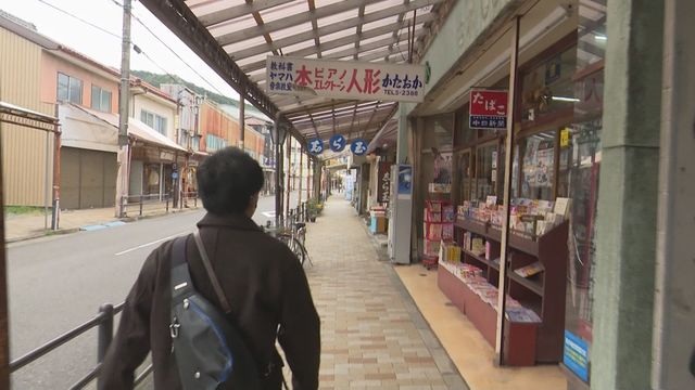 熊野市駅から徒歩で5分ほどのところにある、惣菜店や書店などが並ぶ昔ながらの商店街。