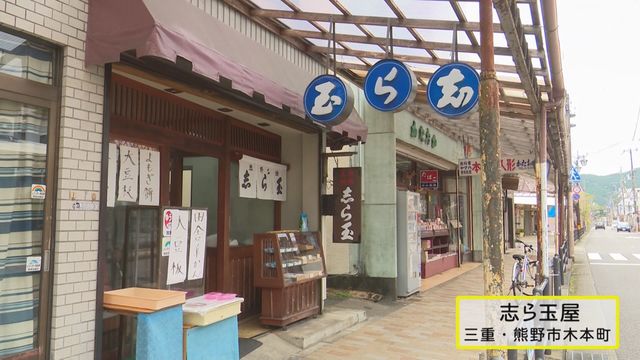 三重県の熊野地方では、戦前から「ご当地菓子」として「しらたま」が食べられています。商店街にある老舗和菓子店は、こしあんを包んだ「しらたま」が名物です。