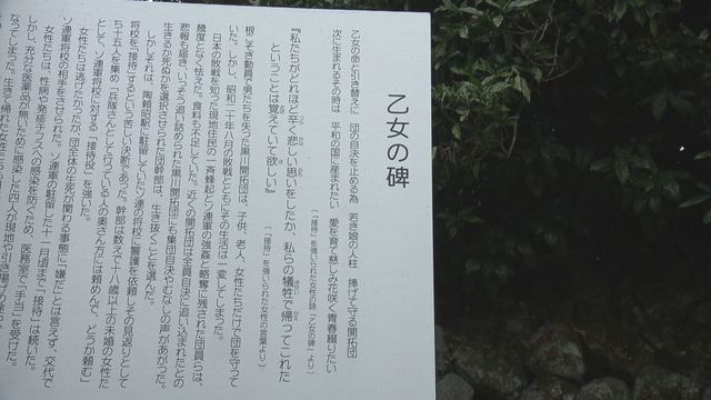 乙女の碑の隣にある真新しい碑文。性接待の事実が記されています。建てられたのは2年前、きっかけとなったのは、女性たちの告白でした。