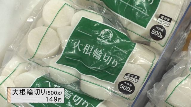 そのまま煮物に使える、149円の「大根輪切り(500g)」などの冷凍野菜から、チンしてすぐ食べられる145円の本格的な「ダッカルビ炒飯」などの調理済の冷凍食品まで、“最強のコストパフォーマンス“を誇るアイテムが数多くありました。