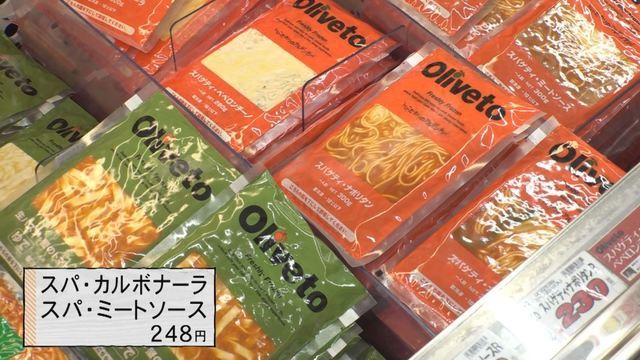 レンジでチンするだけの「スパ・カルボナーラ」・「スパ・ミートソース」(各248円)など、調理済みの冷凍食品もクオリティが高くおすすめ。