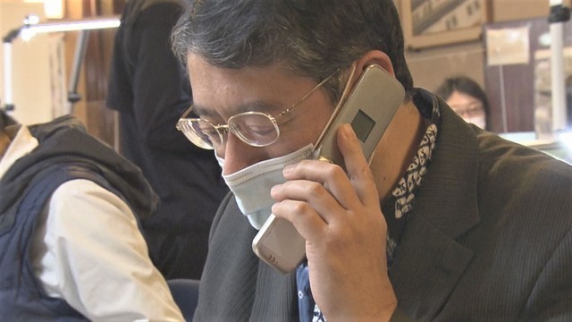 病院へ患者受け入れ調整をする名古屋市の職員: