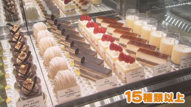 種類は定番と月替わりで15種類以上あり、毎回違うケーキを選ぶこともできます。