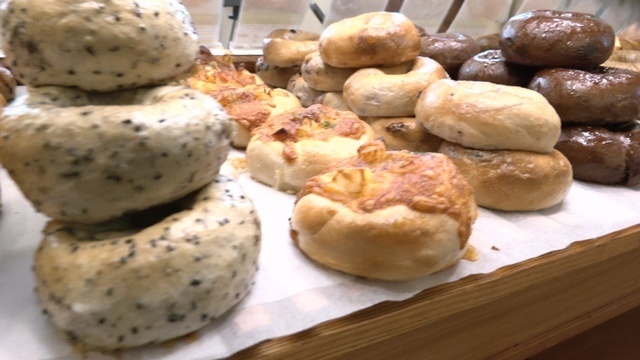 この女性が作るチョコや明太子など、味も種類も豊富なベーグルは、地元の人たちに愛されています。