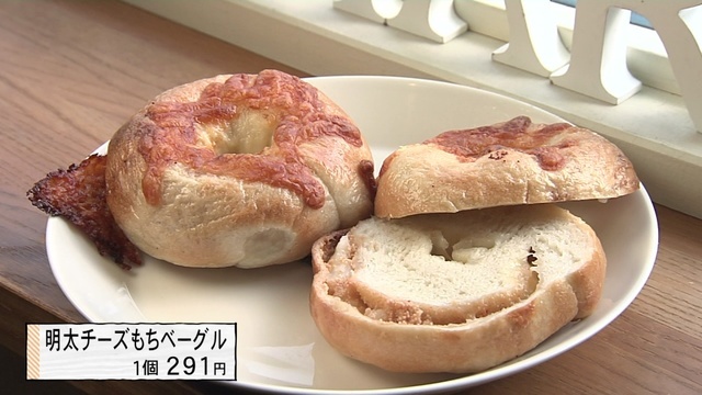 また、生地の中に明太子が入った「明太チーズもちベーグル」(291円)も人気です。「外はカリっと」「中はもっちり」として、クセになる味です。