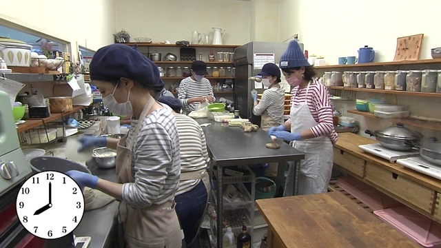 満美子さんの出勤は午前8時。現在店頭販売だけでなく、百貨店にもベーグルを卸しているため、総勢7人で作業しています。スタッフは皆、子育て中のママです。普通のパン店では、朝が早すぎて働けないママも、「コハルベーグル」でなら活躍できます。