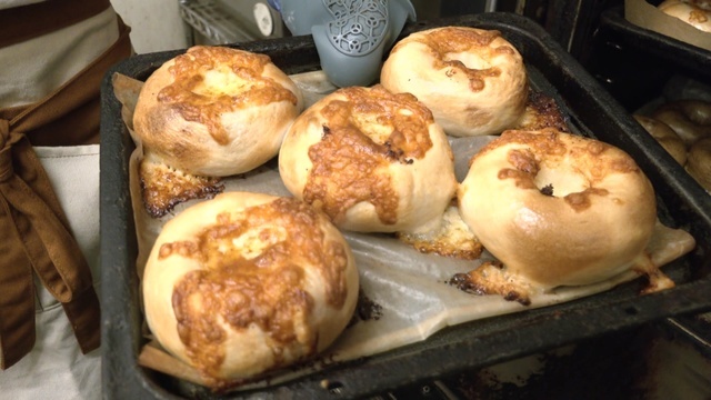 前日に仕込み、一晩かけて発酵させた生地に、具を練り込んで成型していきます。鍋で2分ほど茹でて、オーブンで表面をカリッと焼いたら完成です。