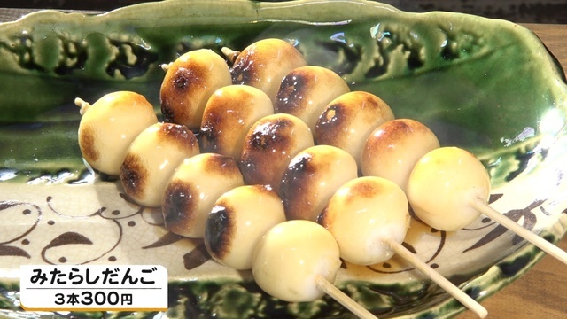 県内の和菓子店から取り寄せただんごは、一本一本手焼きしていきます。そして、碧南のみりんを使った特製ダレにくぐらせて完成。「みたらしだんご」(3本300円)は、甘さがすっきりしていて、しつこくないと評判です。