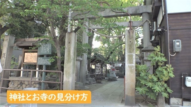 「鳥居がある、動物が見守っているのも神道です。人間の像があるときは、基本的に仏教です」