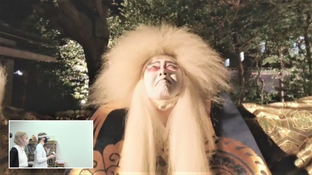 VRだと、顔を動かせば180度見回すことができ、あたかも名古屋を訪れているような感覚に。舞踏の舞いも、迫力満点です。