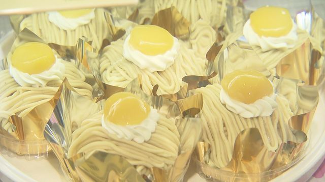 ショーケースには、ニューヨークチーズケーキや2種類のモンブランなど、地元の人に愛される品が並びます。