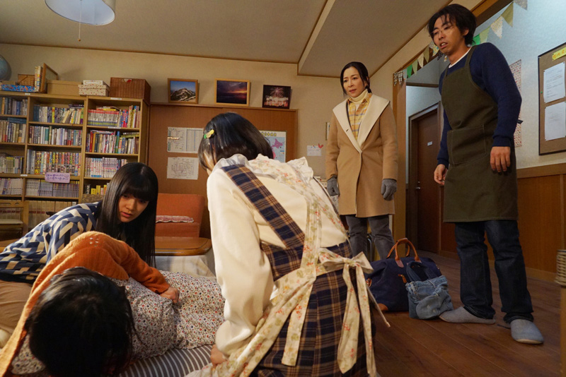 「一人で大丈夫なんですか?」不安がる川端(柄本時生)や子どもたちを安心させるべく、「こう見えても二人産んでるし」というさくらだが、子どもたちはこんな時でも「こう見えてもって?」「若く見えるって意味でしょ」と軽口を叩く。さくらは女子たちに手伝いを命じ、出産の準備を始める。各自様々な反応を示し、一旦躊躇したりはするものの、さくらの必死な姿と貞子の苦しみを前に、手伝い始めるマリア(日比美思)、詩(祷キララ)、玲奈(尾碕真花)、茜(柴田杏花)。ところが由夏(岡本夏美)だけはその輪に入るのを拒む。