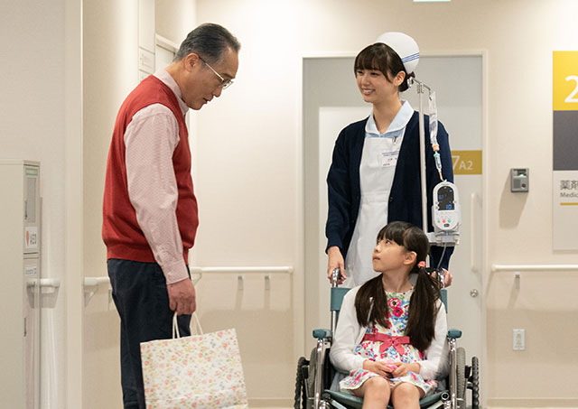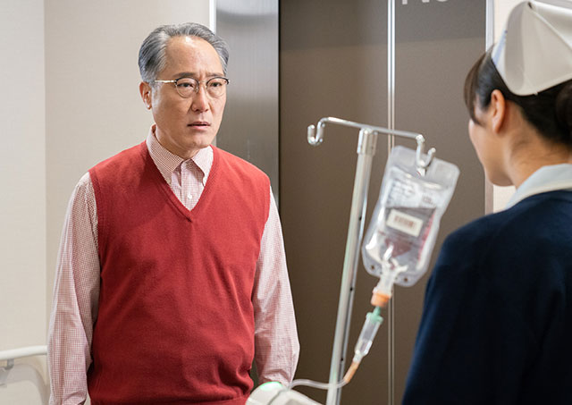 佐野さんが登場するのは、主人公の瑠美(新川)が実習を行っている病院での場面。瑠美が担当している患者、友香(住田萌乃)を車椅子で押していると、そこに現れ、声を掛ける見舞客の老人、というのが佐野さんの役どころです。