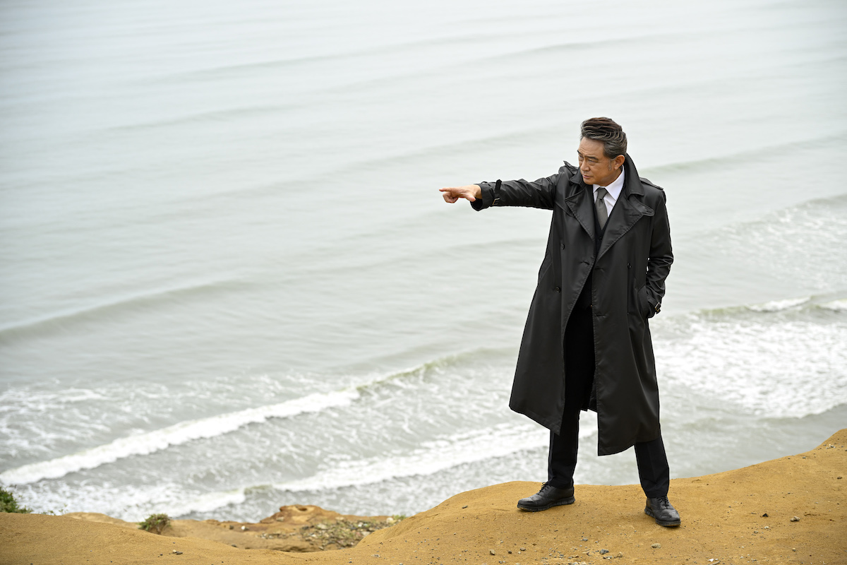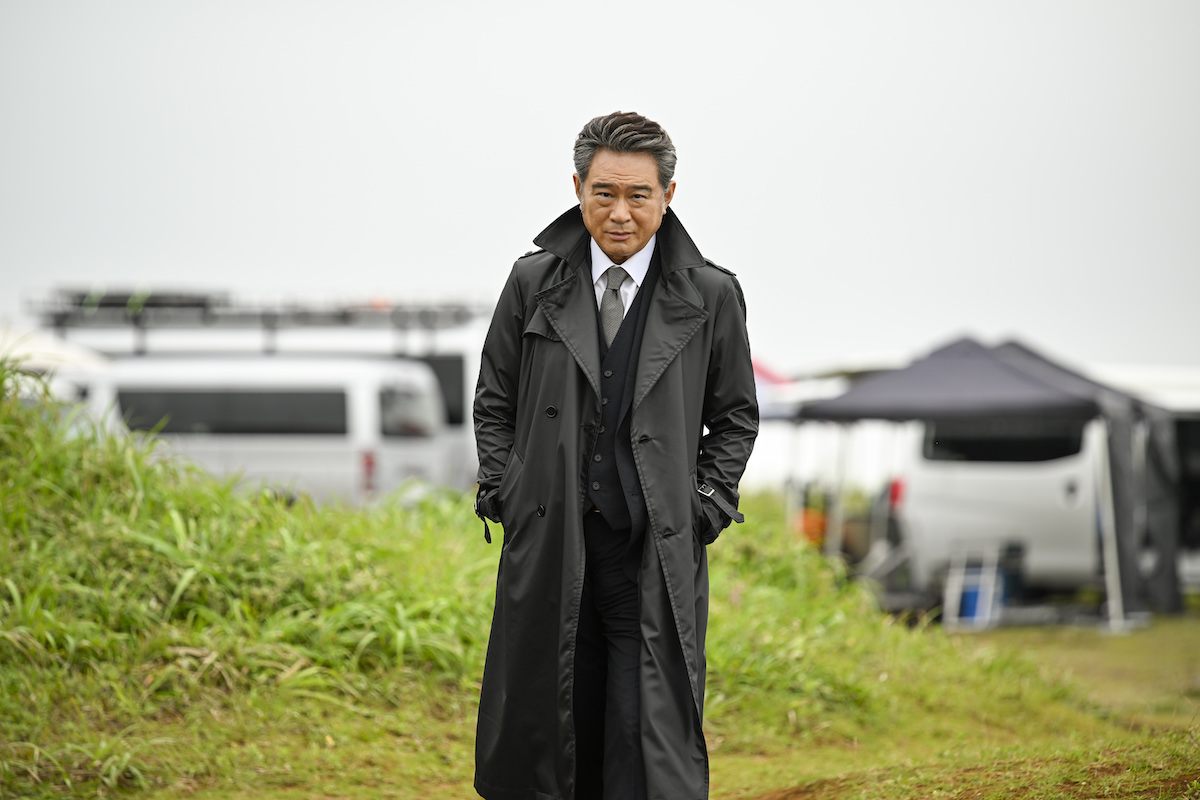 撮影ポイントから数百メートル離れて駐めてあったロケバスから、支度をすませた主役・船越英一郎が、黒のトレンチコートを身にまとってさっそうと歩いてくる。作業をしていたスタッフが全員、手を止め、“おはようございます!”と出迎える。その挨拶を聞いた船越が、両手を広げながら、よく通る声で応えた。