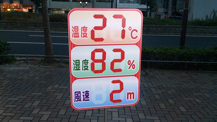 東海テレビ玄関前、午後5時頃のお天気ボードです。蒸し暑さを実感しました。