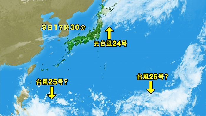 台風24号の後も南海上は台風の卵、熱帯低気圧でにぎやかです。どちらが25号か26号かはわかりませんが、東側に発生する台風が来週水曜頃日本に接近する可能性があります。