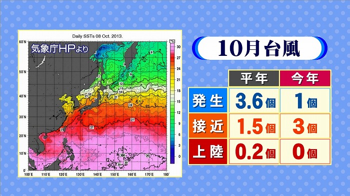 昨日10月8日までですでに3つ接近、平年の倍です。昨年の10月も4つ接近しています。10月台風上陸は2009年以来なし。最も遅い上陸は1990年の11月30日です。