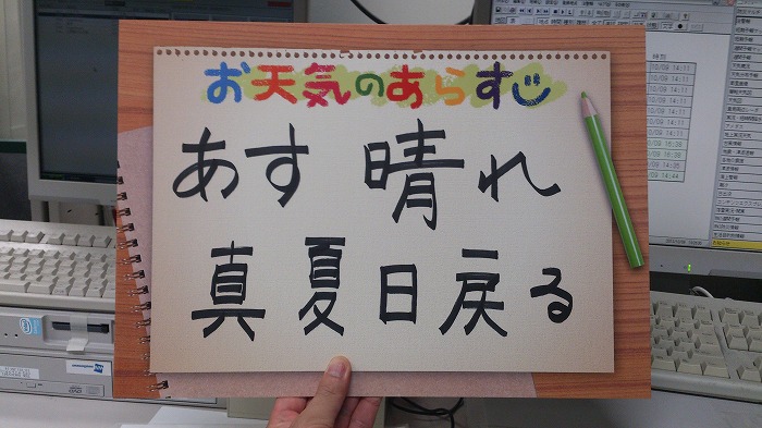 最後にお天気のあらすじです。明日は晴れて真夏日戻ります。貴重な晴れに。ではまた明日!