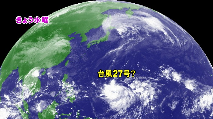 実は今日の画像です。明日までに次の台風27号が26号と同じマリアナ諸島近海に発生の予想です。来週中頃に日本に影響があるかもしれません。日々注目しましょう。