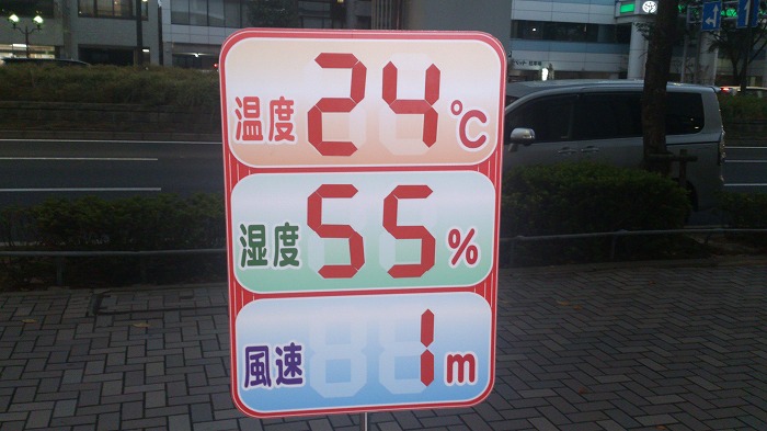 東海テレビ玄関前、午後5時頃のお天気ボードです。快適な気温、今夜晴れ、深夜は東の空を見上げましょう。オリオン座流星群が活動のピークを迎えます。