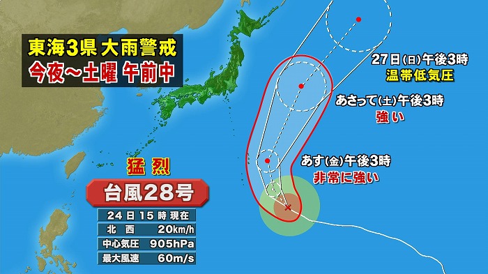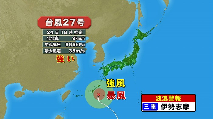 台風28号の情報です。直接の影響はありませんが、暖湿気を送る、高い波を作るなどの間接的影響があります。