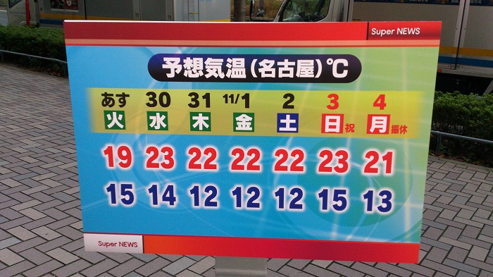 今日の最低気温、名古屋9.7℃、岐阜8.5℃、津9.5℃と各地ともに今季最も低い最低気温で今季初めて10℃を下回りました。高山の最低気温2.7℃とこちらも今季最低。