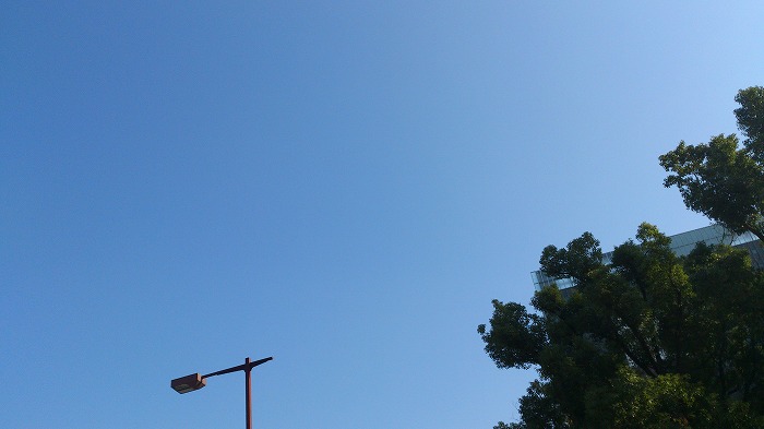今日の空。名古屋市中区、昼前の晴天です。高気圧にすっぽりで秋晴れ。