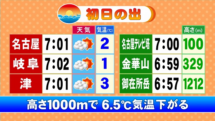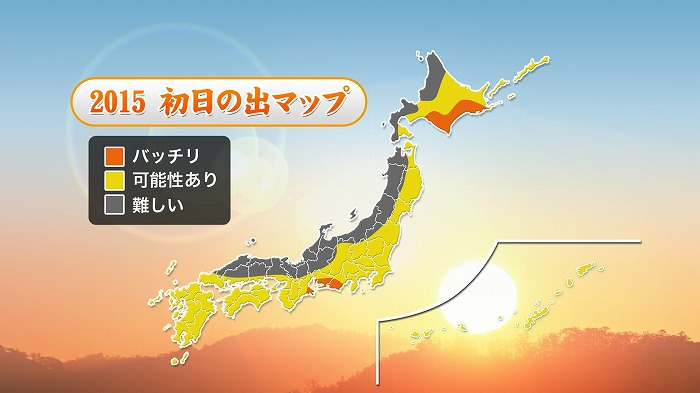 初日の出、各地チャンスはありそうです。標高高い所に行けば早く拝めますが、気温低いので注意。