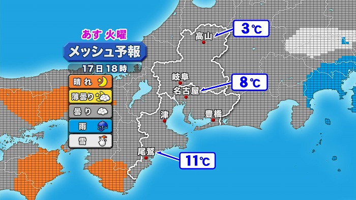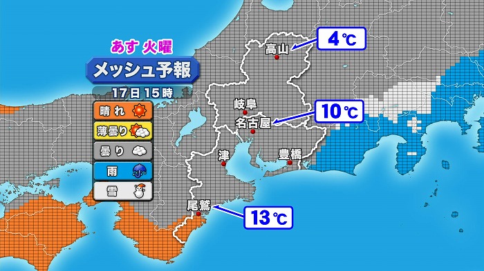 今日の最高気温、名古屋12.6℃、岐阜12.8℃、津12.5℃で平年より2~3℃高い3月上旬~中旬並の値でした。