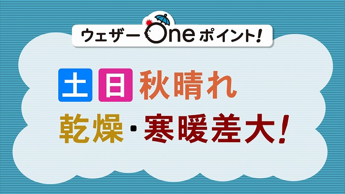 ウェザーOneポイント!です。土日とも秋晴れ。