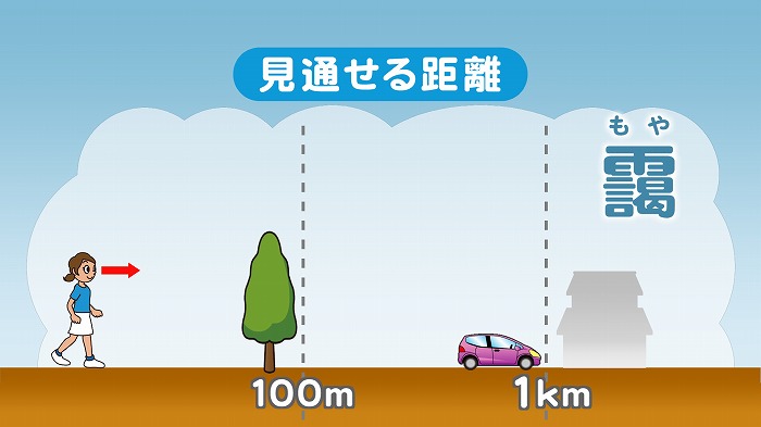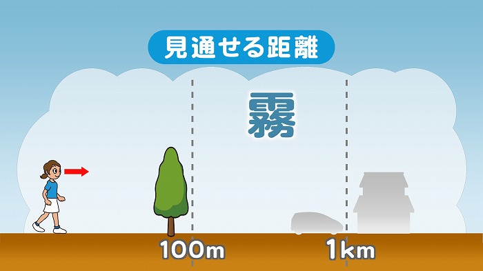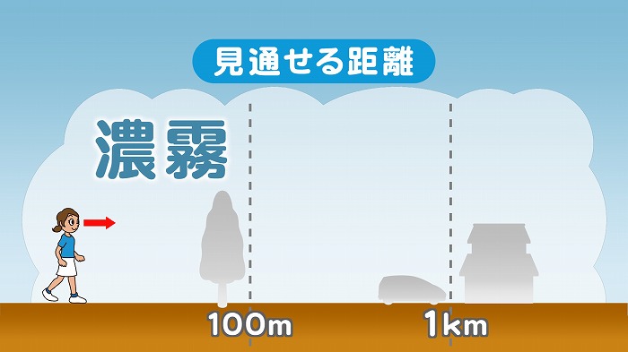 見通せる距離が100m以下なら濃霧。濃霧注意報が出るような状況です。