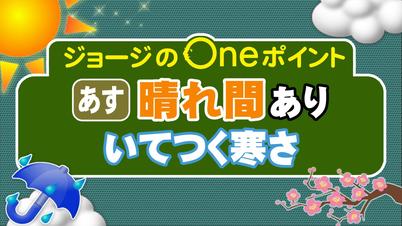 Oneポイントです。明日晴れ間あり。岐阜は明け方にかけて大雪も。凍てつく寒さ変わらず。