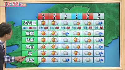 東海テレビ「スイッチ!」東海3県の天気。青空広がるGW。