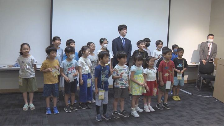 その後、子供向けの将棋教室に顔を出すと、楽しそうに記念撮影に応じました。