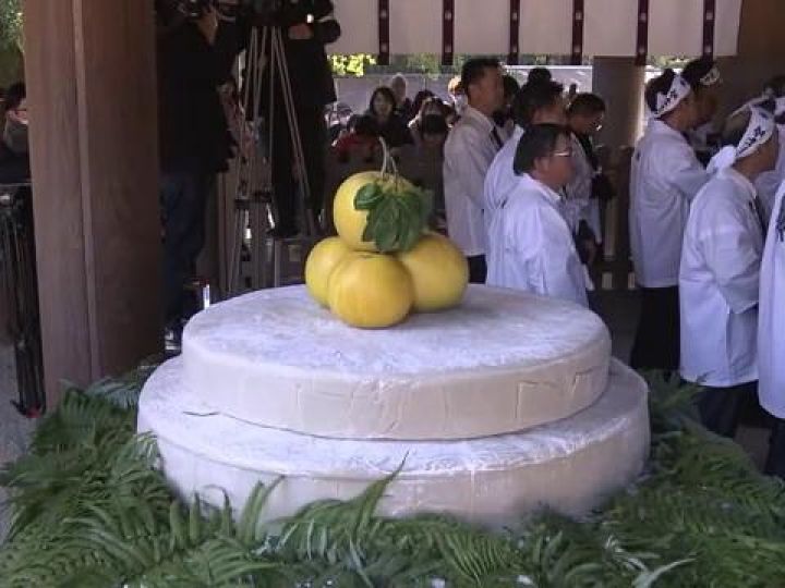 名古屋の熱田神宮で30日、年末恒例の大鏡餅の奉納が行われました。