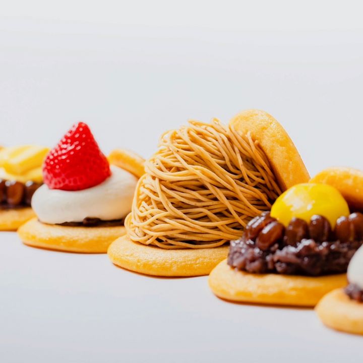 店のイチオシは「絹糸もんぶらん」です。注文を受けてから粒あんと生クリームを乗せ、上から甘みが強くみずみずしい球磨栗(くまぐり)のペーストを細く美しく絞ります。栗好きにはたまらない一品となっていて、絞る様子も目の前で見ることができます。