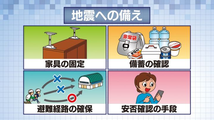 また、強い揺れになるため耐震対応や家具の固定が必要です。耐震はなかなかすぐにはできませんが、家具の固定は確認をしてほしいとしています。