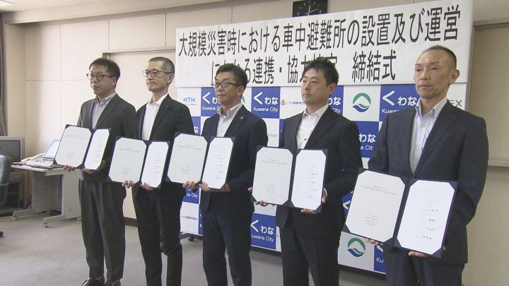 桑名市は多度第2工業団地にある4つの会社と21日に協定を締結し、南海トラフ巨大地震などの大規模災害時に、それぞれの企業の駐車場あわせておよそ900台分のスペースを従業員らが車中泊で使えるようにする連携を行います。