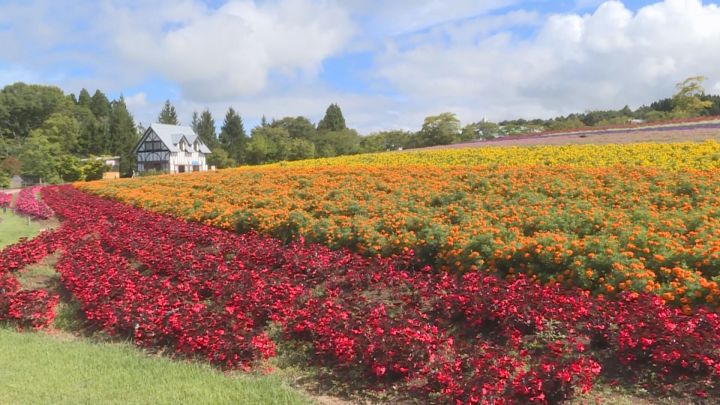 岐阜県郡上市のひるがの高原では、マリーゴールドなど5種類の花が秋の訪れを告げています。