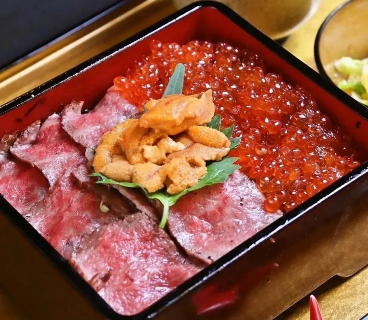 一番人気はご褒美感たっぷりな「犇重(ひしめきじゅう)」です。独自の製法で仕上げた近江牛のローストビーフに、新鮮なイクラとウニの海鮮を合わせた、肉と海鮮が一つになった贅沢なお重です。自家製の赤ワインベースの秘伝タレで、食欲が増します。