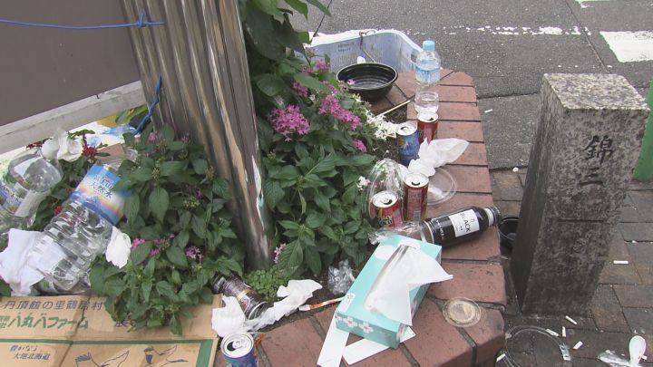 一夜明けた中区の繁華街、錦三丁目では、路上にペットボトルや空き缶などが多数捨てられていました。