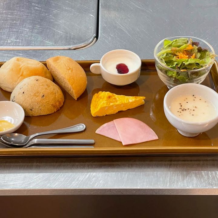人気のモーニング「手作りパンのモーニングセット」は、ドリンク代のみで自家製パン3種類・サラダ・ポタージュ・オムレツ・ヨーグルト・ハムの6種類のメニューが楽しめます。パン3種類のうち1種類とポタージュは、日によって変わります。