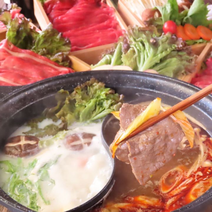 スープは2種類選ぶことができます。ココナッツスープは植物由来の自然の甘みと栄養がたっぷりと含まれています。スープは他にも、キノコ・豆乳・トマト・辣鍋(マーラー)・和風があり、いずれの鍋も体にもやさしく、どれを選んでも女性や健康を気遣う方にはオススメです。