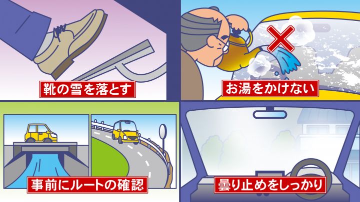 3つめは「事前にルートの確認をする」ことです。雪の状況だけでなく橋や坂道があるか確認することが大切だとしています。